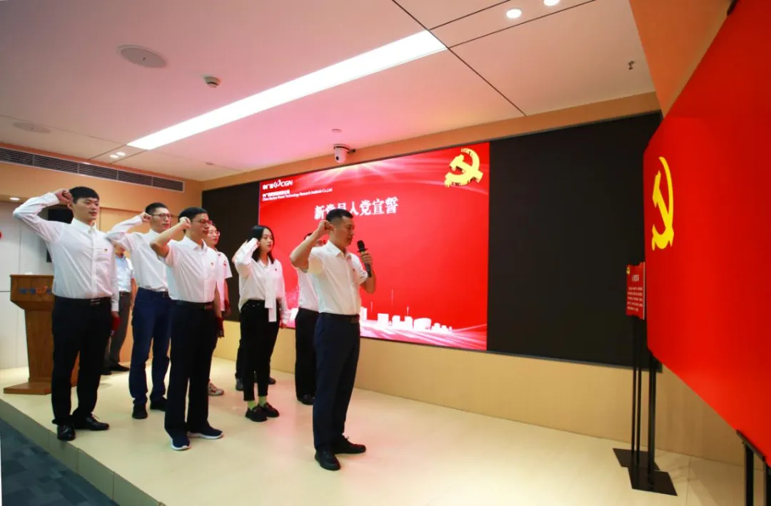 中廣核研究院有限公司舉辦慶祝中國(guó)共產(chǎn)黨成立102周年主題活動(dòng)。中廣核研究院黨委書記、總經(jīng)理舒睿講授主題教育專題黨課。會(huì)上舉行了新黨員宣誓儀式,各入黨介紹人為新黨員鄭重佩戴黨員徽章,并贈(zèng)送《中國(guó)共產(chǎn)黨章程》,7名新黨員整齊列隊(duì),面向黨旗莊嚴(yán)宣誓,全體與會(huì)黨員一起重溫入黨誓詞。